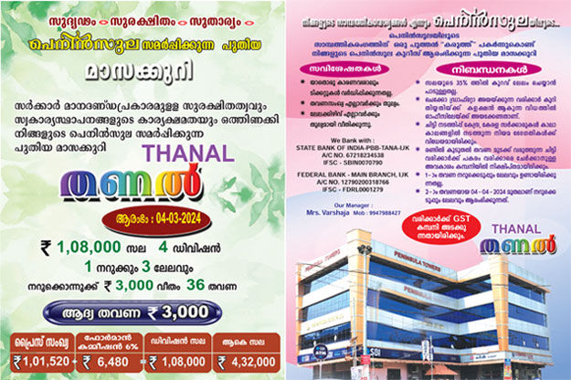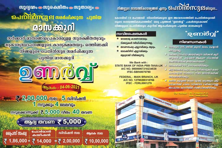ഉണർവ്വ് മാസക്കുറി ആരംഭം ജൂൺ 4 2021, ₹200000 സല 5 ഡിവിഷൻ ഒരു നറുക്കും 4 ലേലവും, നറുക്കൊന്നുക്ക് ₹5000 വീതം 40 തവണ, ആദ്യ തവണ ₹5000